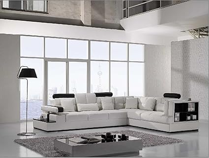 Amazon Com Vig Furniture T117 Modern White Leather Sectional Sofa