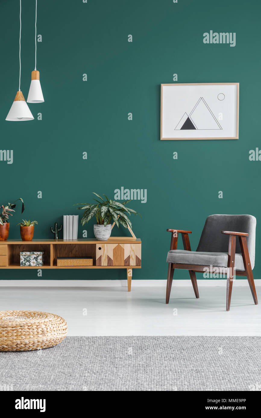 Simple Geometric Poster Hanging On The Wall In Green Living Room